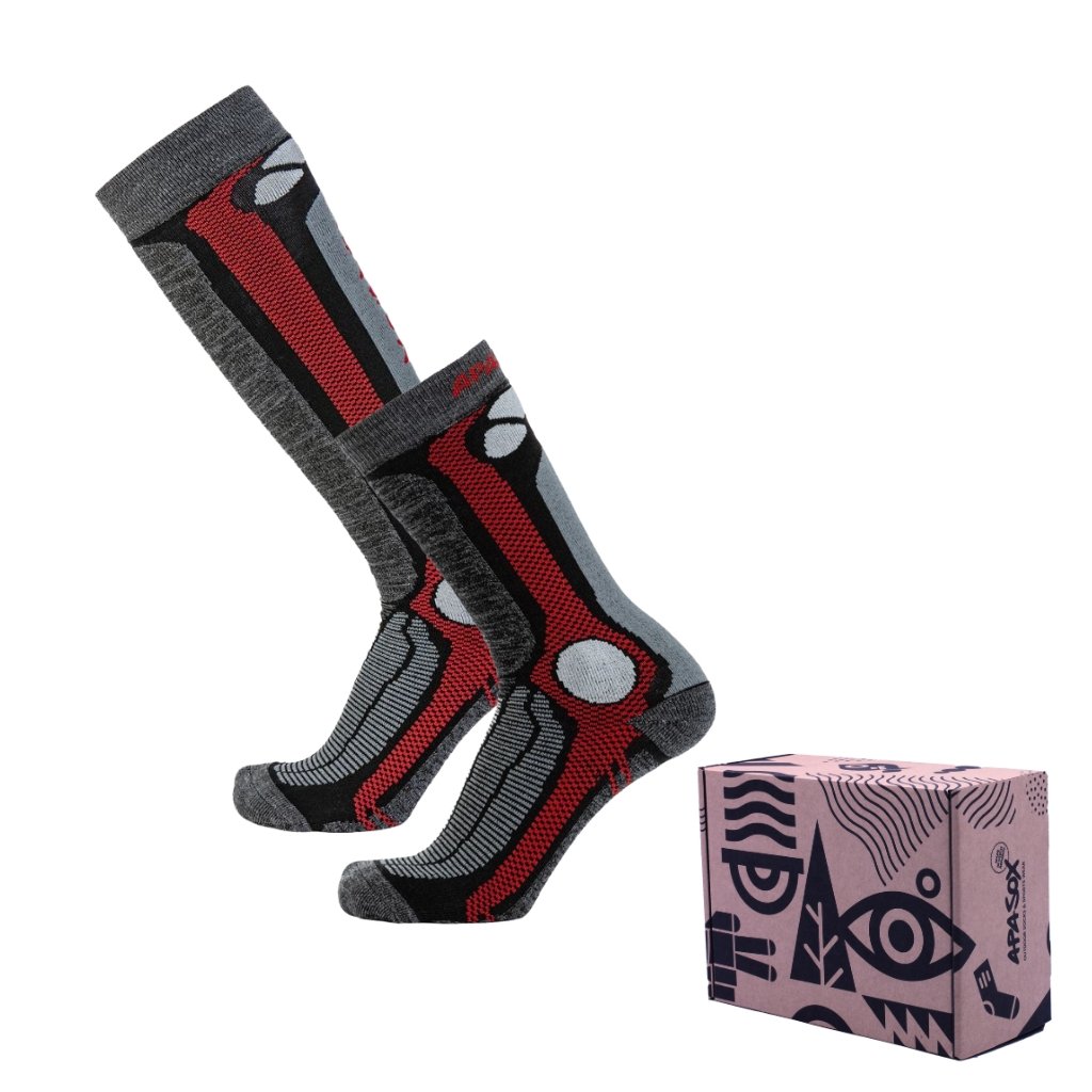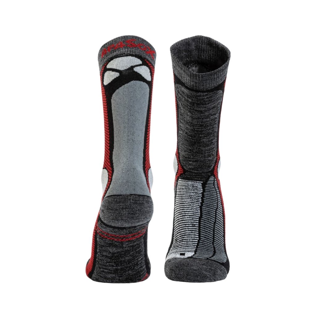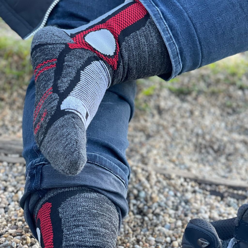 Ponožky i podkolenky mají výborné termoregulační vlastnosti (zabraňují přehřátí, zpocení a následnému prochladnutí nohou) a skvěle absorbují a odvádí vlhkost. Část mezi nártem a holení je ztenčená, což přináší větší pohodlí při chůzi. Jsou pletené zvlášť na pravou (R) a levou (L) nohu, aby ti perfektně držely na nohách.