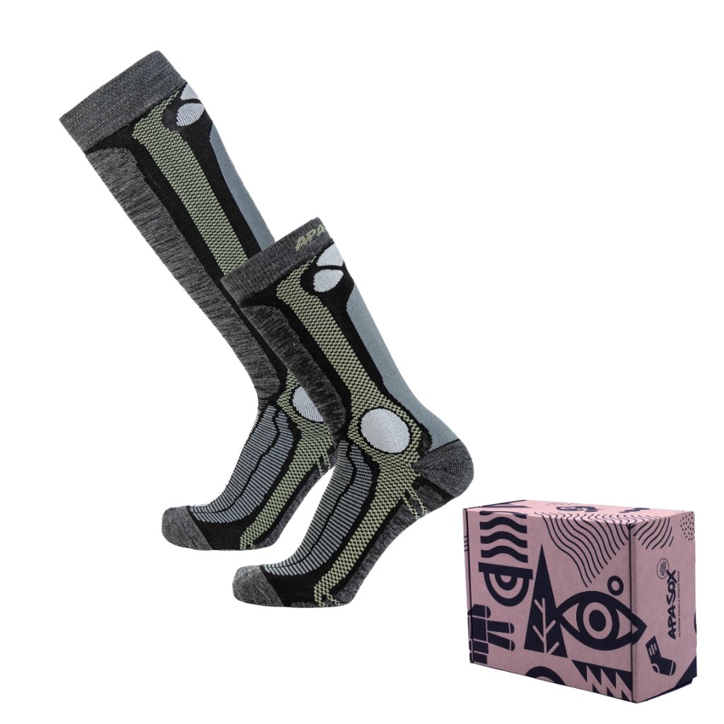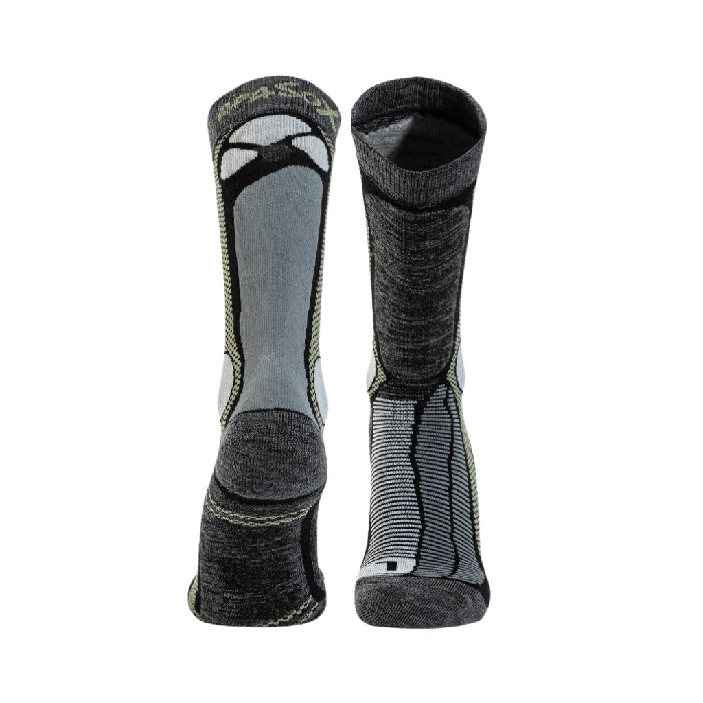 Ponožky i podkolenky mají výborné termoregulační vlastnosti (zabraňují přehřátí, zpocení a následnému prochladnutí nohou) a skvěle absorbují a odvádí vlhkost. Část mezi nártem a holení je ztenčená, což přináší větší pohodlí při chůzi. Jsou pletené zvlášť na pravou (R) a levou (L) nohu, aby ti perfektně držely na nohách.