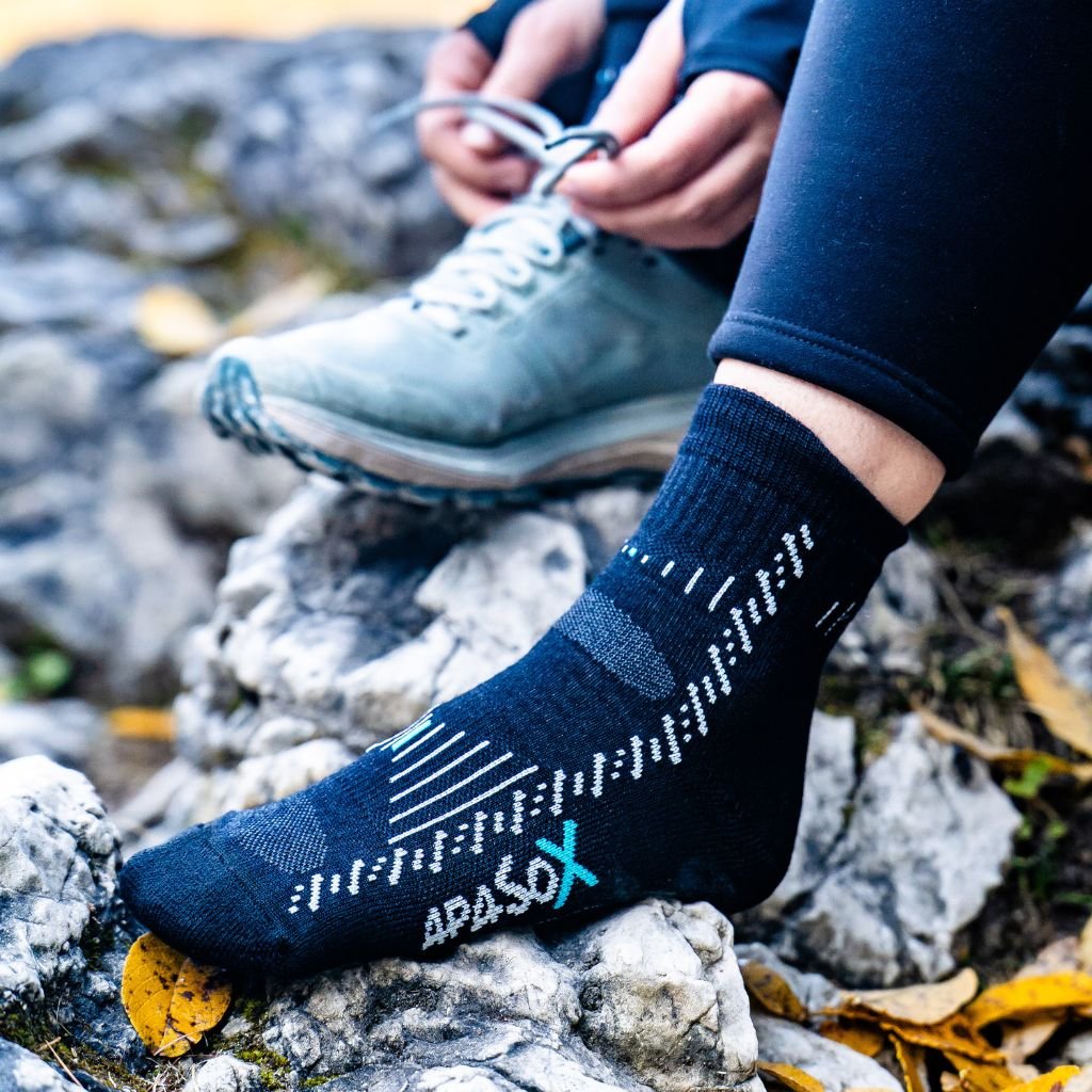 Ponožky mají zesílenou špičku a patu, skvěle absorbují a odvádí vlhkost, jsou odolné proti zápachu a mají výborné termoregulační vlastnosti (zabraňují přehřátí, zpocení a následnému prochladnutí nohou).