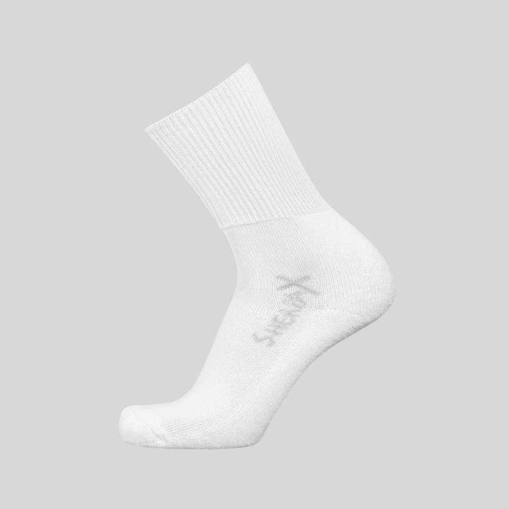 Celoroční bavlněné ponožky VITAL Z s volným lemem. Vhodné pro silné nohy, pro nohy, které otékají nebo na běžné použití. V bílé barvě jsou ideální do lékařského a lékárenského prostředí.