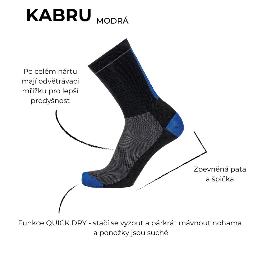 Pokud sháníš ponožky na cyklistiku, ponožky KABRU ti můžeme vřele doporučit. V nabídce je máme ve čtyřech barvách, takže ponožky perfektně sladíš třeba s barvou svého kola nebo svého dresu.