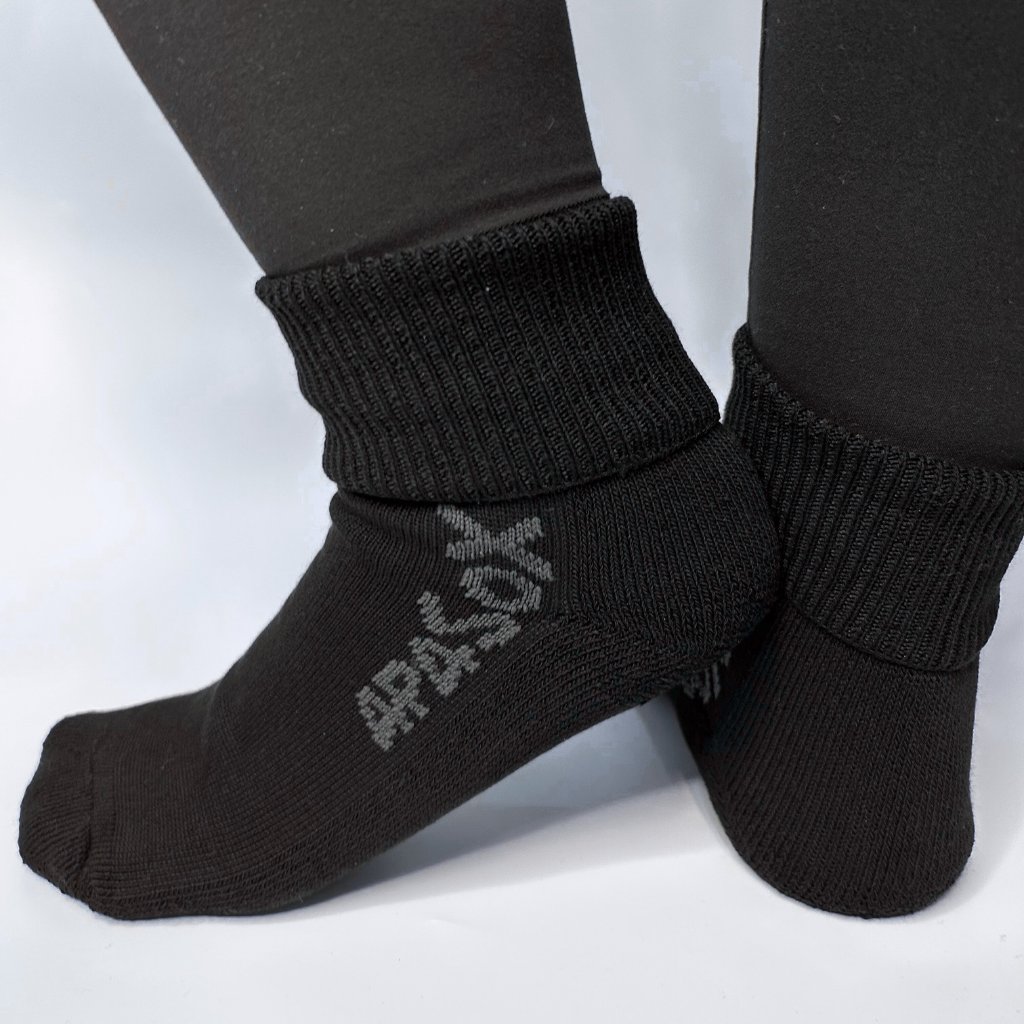 Typickým znakem ponožek je volný lem, který si můžete podle potřeby ohrnout. Ponožky jsou volnější také v oblasti nártu a kotníku, takže nikde neškrtí ani netlačí a poskytují komfort po celý den.