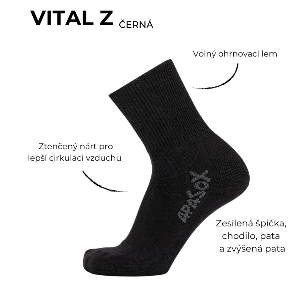 Ponožky VITAL Z nabízíme samostatně v černé, bílé a šedé variantě.